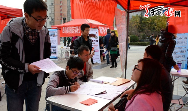 天天天水网讯 11月19日,由天水市总工会就业服务中心主办,天水市青年创业就业服务中心承办的2016年天水市工会冬季第一季就业专场招聘会在天水市秦州区龙城广场举行。本次招聘会主要面向社会未就业的下岗职工、青年和高校毕业生,通过本次招聘会帮助他们找到更合适的职位。