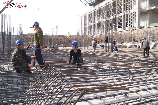 11月18日,工人在天水商贸城成纪广场地下停车库兼人防工程建设现场施工。天水成纪新城规划面积17.6平方公里,一期规划面积9.5平方公里,是天水发展商贸会展、房产开发、科教文化、旅游产业、体育产业的重要功能区。目前,新城内已启动投资1亿元以上的项目35个,总投资210亿元。随着一系列重大项目的落地实施,天水成纪新城建设进入快车道。(天水日报记者马哲 摄)