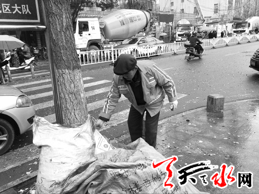 “从11月初开始,树叶就多了起来,大概一直要扫到12月底。这些树叶使我们的工作量增加了许多,一天要扫好多次,若不及时清理,这些落叶很容易在下雨或大风天气里影响交通安全。”11月21日下午2时,在秦州区民主东路,一位负责清洁的环卫工人告诉记者,他所在这段路实行的是两班倒,他从1点钟接班,不到1个小时时间,已经清扫了五大袋子落叶。