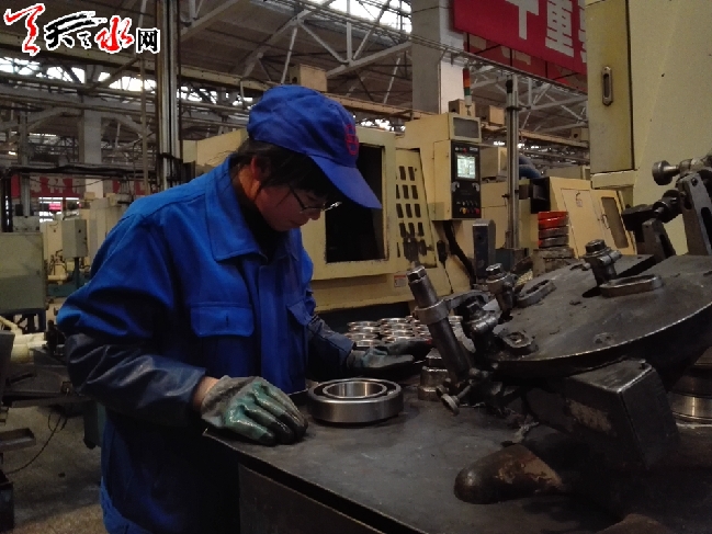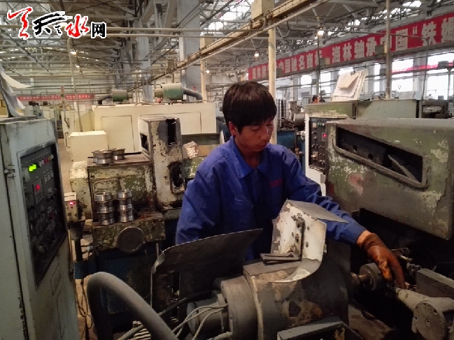 11月22日,甘肃海林中科科技股份有限公司的工人正在加紧生产。该公司主要生产英制圆锥滚子轴承、圆柱滚子轴承等,品种达5000多个,产品出口30多个国家和地区。今年截至11月,公司已实现产值3.8亿元,完成销售4.1亿元,回款3.7亿元。(天水日报记者何郁 摄)