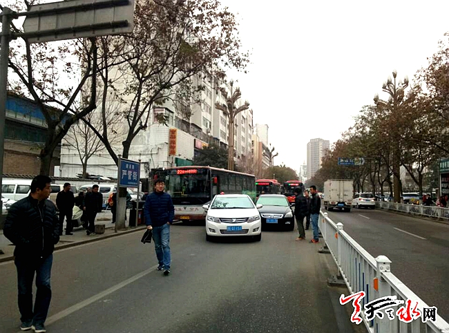 天天天水网25日15时讯 【记者王雪梅】11月25日上午,在我市建设路市第一人民医院附近,两辆汽私家车相撞造成交通堵塞。在此,提醒各位司机朋友,在交通拥堵时尽量慢行,尤其最近气温下降,地面有可能会结冰,因此更要注意行车安全。