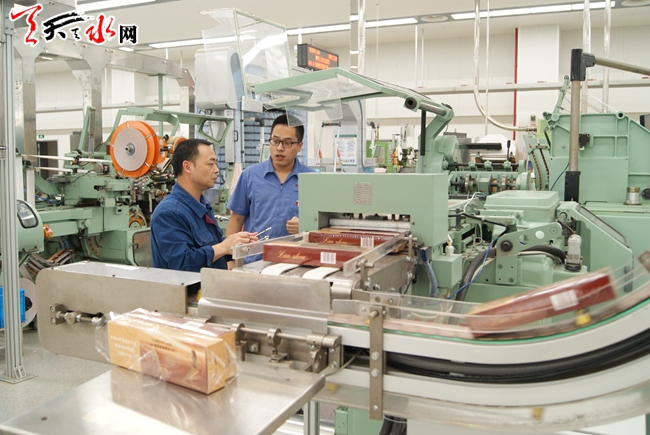 11月25日,天水卷烟厂工人在生产线上工作。天水卷烟厂完成易地整体搬迁技改项目以来,企业年生产能力大幅提升,发展实力迈上了新台阶。今年1月至10月,天水卷烟厂生产卷烟33.1万箱,同比增长3.5万箱,增幅11.82%,入库税金34.02亿元。 (天水日报记者马哲 摄)