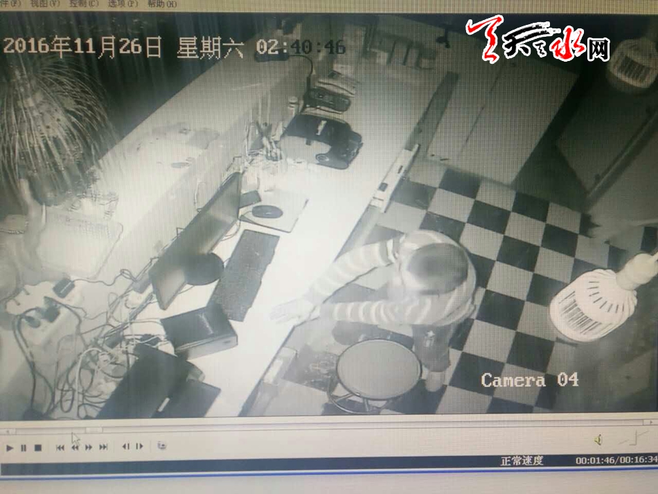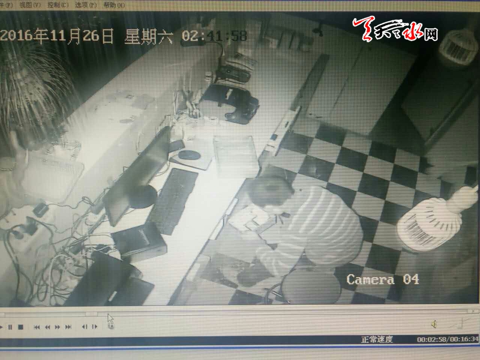 民警通过调取办公室的视频发现,26日凌晨2时许,有一名年约20岁左右的男子从办公室的窗户翻入,作案后盗走财物,后经多方了解发现,该男子是秦州区大门镇人,暂住在秦州区玉泉镇枣园村。