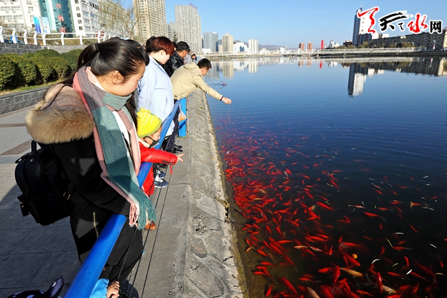 ▲近日天水市气温回暖,市民纷纷走出户外,享受冬日暖阳。图为12月5日市民在天水湖边观赏锦鲤鱼。(天天天水网记者孙镇 摄)