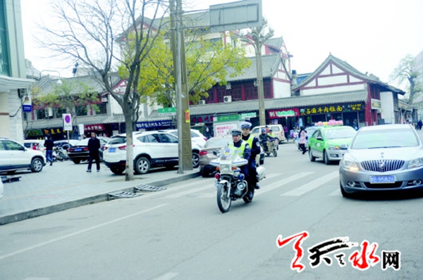 出发前,城区交警大队副大队长王伟春对我们反复叮咛:“从最西边的桥头到最东边的成纪大道,从南边的大众南路、天庆路等到北边的泰山路、皇城路以及市内各大小街道,凡有车辆通行的地方,都要逐一巡逻,排除交通安全隐患。尤其对一些容易引发交通阻塞和交通事故而设立了禁止停车警示牌的路段,要多次进行巡逻排查,一旦发现违停车辆,要立即进行处理。”