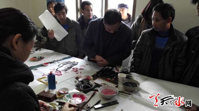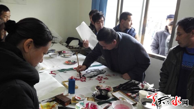 天天天水网讯 【记者 杨晓斌】12月8日,甘谷县八里湾乡杨家沟村,我市知名书画家为该村村民赠送书法和绘画作品。当日,市文联组织我市知名书画家,演艺界人士走进该村,举办天水市文联送文艺下乡暨双联活动。活动中,不论书画家现场创作的书画作品还是文艺演出,都受到群众的热烈欢迎。