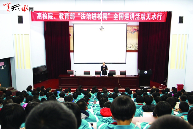 天天天水网讯【记者张超】12月7日下午,由最高人民检察院、教育部联合组织的“法治进校园”全国巡讲活动在天水市逸夫实验中学举行。