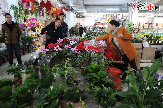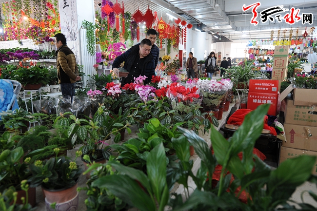 进入冬季以来,天水市花卉市场迎来销售的旺季。12月8日,秦州区花鸟市场各类鲜花竞相绽放,一片绚丽多姿的景象,前来购买花卉的市民络绎不绝。(天天天水网记者周文涛 摄)