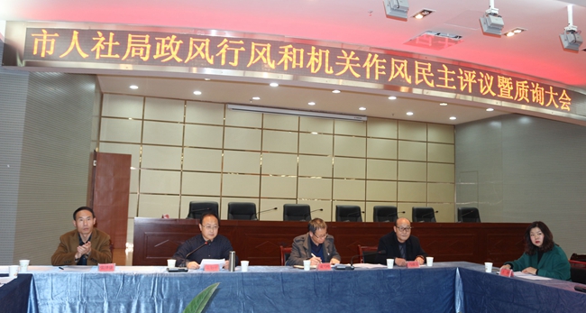 市行评第五组张泽康同志对市人社局2016年效能风暴行动机关作风和政风行风建设情况进行了评议,市行评第五组行评代表、行评监督员、服务对象代表就全市事业单位职称评审、高校毕业生服务企业政府补助资金发放、机关事业单位养老保险制度改革、建筑行业参加工伤保险等方面的问题进行了现场质询,市人社局分管领导和局属单位负责人逐一作了认真答复。市人社局党委委员、副局长彭国斌就进一步加强和改进机关作风作了表态发言。最后,市效能办、市直机关工委宣教科科长成雪峰代表市效能办作了总结讲话。