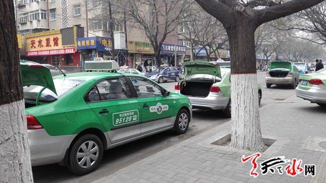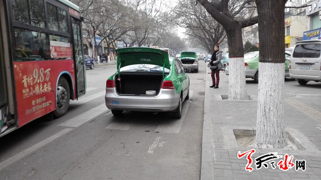 天天天水网28日16时讯【记者陆羽】当日午间,天水长途汽车站前,多辆出租车正在路边停靠待客。而让人颇觉奇怪的是,这些车的后厢盖都是打开着的,却又不是装卸行李,那到底在干嘛呢?通过观察和了解发现,原来出租车掀起后盖也许是违规停车怕被摄像头拍到车号牌,这样做是在玩隐身呀。这奇葩现象也是没谁了!天天天水网在此提醒司机朋友,行车,安全第一!