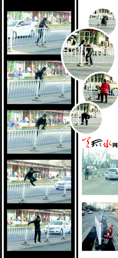 2016年12月29日,记者经过秦州区绿色市场时,无意中发现一名青年男子正在车水马龙的机动车道上穿行,在他横穿马路的过程中,紧急刹车声此起彼伏。当该男子行至马路中间的隔离护栏处时(记者还在想,他要怎么过马路),只见他手扶护栏纵身一跃,直接跳到了另一条机动车道上。接着,他又像之前一样在熙来攘往的车流中穿行而过。说实话,那名男子翻越护栏时的纵身一跃,可谓是身手敏捷、动作潇洒,但并未赢得人们的喝彩,相反,引来的是路人的一片侧目。