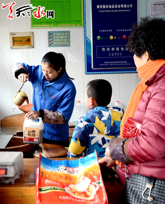 当天上午,记者来到了秦州区坚家河菜市场及位于伏羲城内的制作食醋的加工作坊,只见作坊内已经排满了前来购买食醋的市民,你三斤、他五斤,甚至有些市民拿着平时家里装油的大桶前来购买。