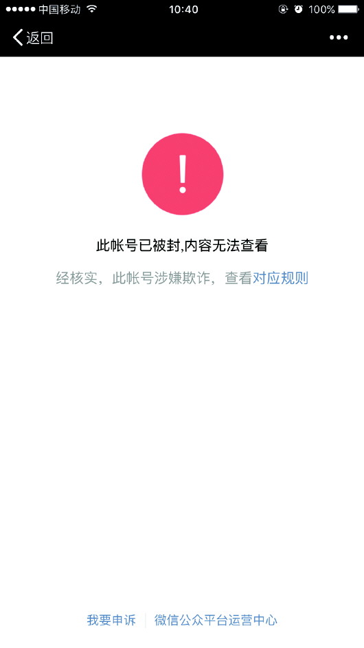 第二天,当记者在自己的微信圈里点击前一天发出的“元旦红包”时,屏幕上出现了“此帐号已被封,内容无法查看”的提示。此时,记者便彻底弄明白了他们所谓“高额红包”的猫腻,就是为了骗取微信用户的个人信息,大家千万不要再上当了!