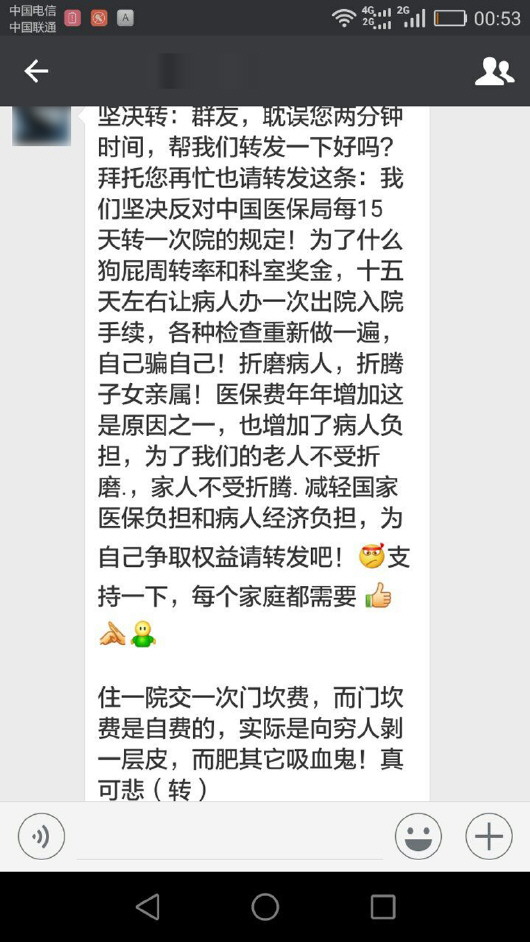 近日,一条“我们坚决反对中国医保局每15天转一次院的规定!为了什么狗屁周转率和科室奖金,15天左右让病人办一次出院入院手续,各种检查重新做一遍!住一次院交一次门槛费,而门槛费是自费的……”的微信消息被众多网友转发,而且还在群里进行了讨论,各种声音都有。那么,这是真的吗?