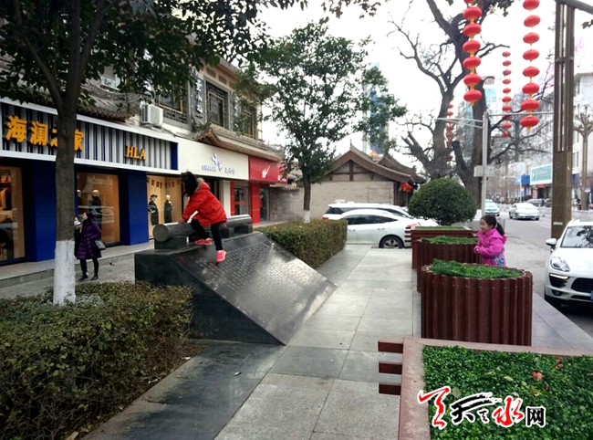 天天天水网11日16时讯【记者王雪梅】 1月11日,在秦州区民主西路,两个小孩在马路边的斜面石碑上来回跑着玩耍,安全实在令人担忧。记者在现场看到,除了孩子在独自玩耍,旁边并没有监护人的看管。记者在这里提心广大家长,请务必看管好自家的孩子,让孩子在安全的地方玩耍,以免伤到孩子。