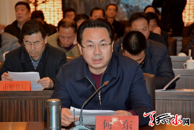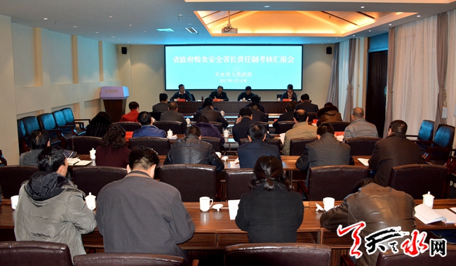天天天水网讯【见习记者徐媛】1月9日至10日,省农牧厅党组成员、副厅长杨祁峰带领省粮食安全省长责任制考核组来天水市,检查考核2016年度粮食安全省长责任制目标任务完成情况。副市长何东出席汇报反馈会。