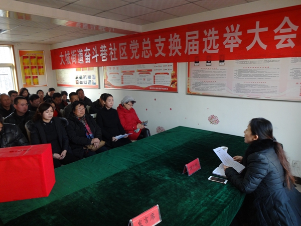 1月12日,按照街道党工委的统一部署,大城街道奋斗巷社区党总支召开党员大会,选举产生了新一届社区党总支委员。会议严格按照组织程序和选举流程进行,取得了圆满成功。