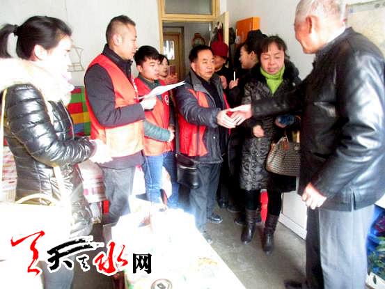 天天天水网讯(通讯员曹彦彦)在鸡年春节即将来临之际,为了让社区贫困家庭过一个快乐、祥和的春节,王家磨社区联系驻辖区单位天水市卫校、王家磨社区卫生服务中心、甘肃五建集团公司、天水市第三人民医院以及晨曦爱心组织共同开展送温暖、献爱心活动。