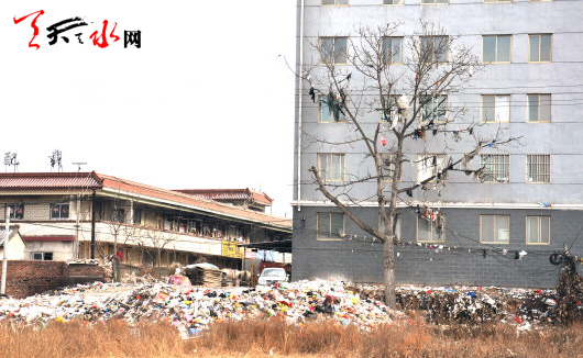 照片中“立此存照”的真实与难堪,是1月14日记者在麦积区甘泉镇采访时,摄自古镇街上一农贸市场旁新楼下的场面,漂亮干净的新楼与脏乱不堪的环境实在格格不入。记者向居民了解到,楼下大量垃圾是农贸市场堆扫出来的,时间长了有人清理,而楼旁挂满树枝的垃圾是住在楼上的人从窗户随手抛扔出来的,其中也有装修时产生的建筑垃圾,有人为图省事就直接从后窗口往外扔。“你看这棵核桃树被垃圾糟蹋成什么样子了,实在太难看了。”