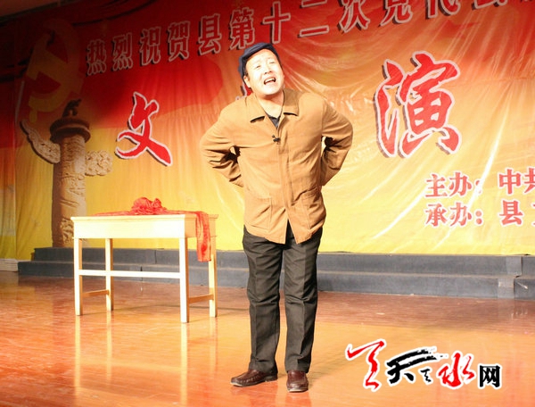 近日,“中华魂·天水风”弘扬社会主义核心价值观专题晚会在秦州大剧院上演。演员王海生受邀带着自己创作的独角戏《村长开会》走上晚会舞台。一段让人忍俊不禁的开场白,把上级传达的会议精神试图给村民用“土话”解读清楚却不时闹出笑话的“村长”,在王海生的精心演绎下,活灵活现地出现在舞台上。举手投足间透着一股“村长”范儿的农村基层人物形象,顷刻间淹没在了台下观众的掌声与笑声中。