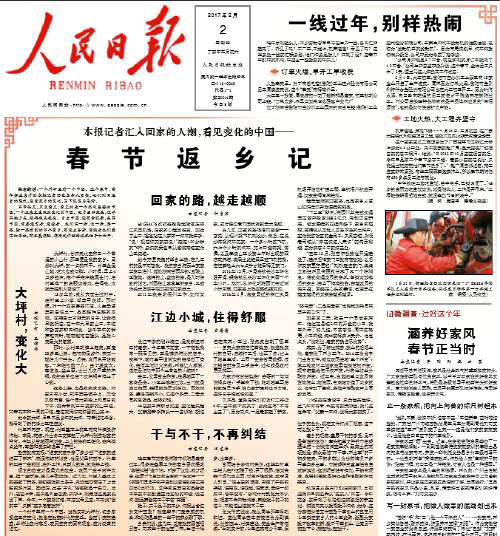 人民日报头版刊发记者春节返乡记:一个村里有一个中国