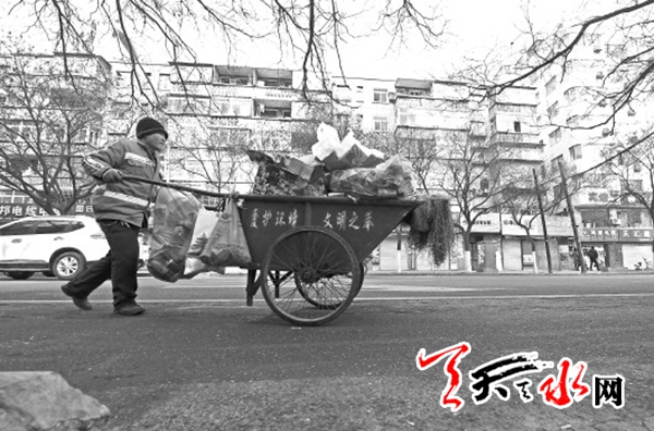 一名环卫工在秦州区新华路清运垃圾。记者 年葆东 摄