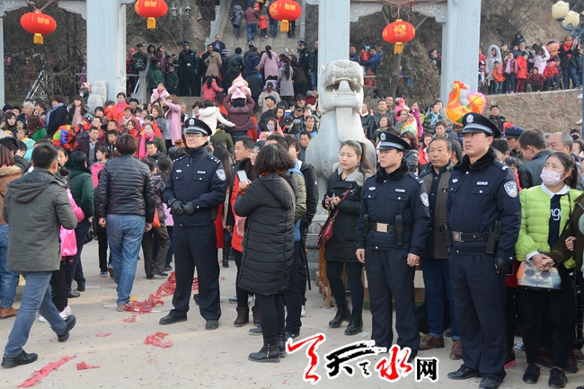 天天天水网讯 麦积公安分局精心组织、周密部署,高标准、高质量地完成了一年一度的麦积镇街子2月5日(农历正月初九)社火汇演暨崇福寺庙会安全保卫任务。