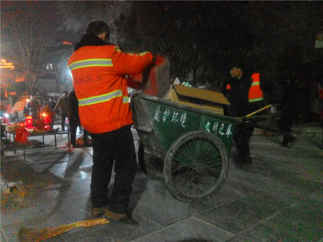 从正月初八夜间揭开朝观序幕之后,人们纷至沓来,天水玉泉观内人潮涌动,总数达10万人的朝观队伍蔚为壮观,这对玉泉观及周边环境卫生状况是一个巨大考验,为全力做好“上九朝观”庙会的环境卫生保障工作,给广大市民营造一个干净整洁、靓丽有序的节庆氛围,秦州区城乡环卫局抽调精干力量进行了大量的环境卫生和庙会秩序保障工作。