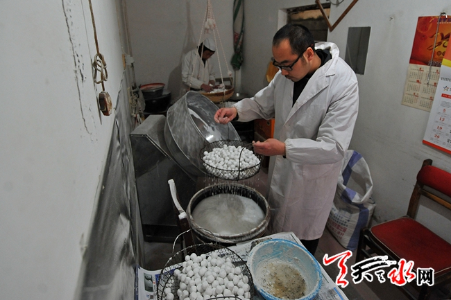 2月7日,秦州区一家元宵店员工正在制作手工元宵。正月十五元宵节将至,传统手工元宵受到市民青睐,俏销市场。  记者 孙镇 摄