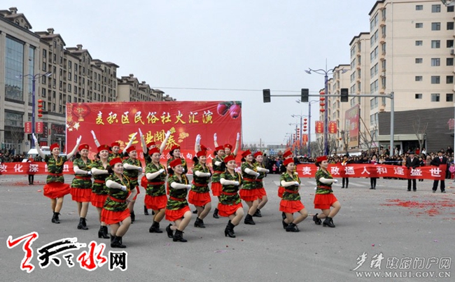 七、活动内容:由花牛、马跑泉、社棠、甘泉、麦积等乡镇和3个街道办事处组织辖区民间群众自办社团和驻区各企事业单位、群众团体,排演以社火、高台、花车等为主的社火队伍,具有地方特色的民俗表演队伍,每个单位按10个节目准备,在天河南路主干道至兴陇路东行进式表演。