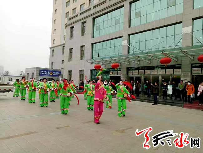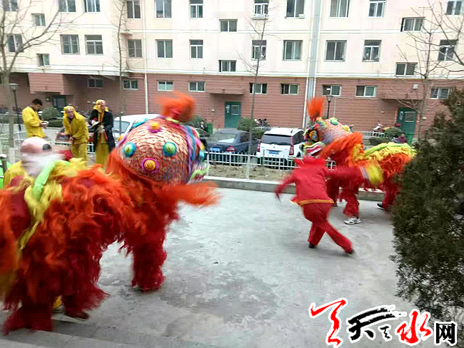 天天天水网讯(通讯员曹彦彦)2月6日上午,王家磨社区组织舞狮队和腰鼓队在辖区内举行新春文化拜年活动,辖区单位职工和居民群众聚集在一起,用传统民俗热热闹闹地过新春。