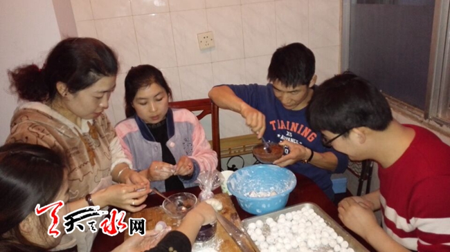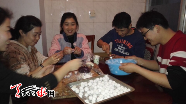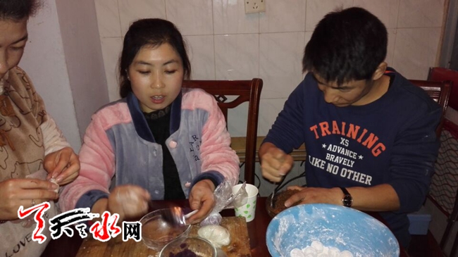 天天天水网2月10日讯【记者 王雪梅】2月11日是我国传统节日元宵节,2月10日晚上,我市何女士一家人为庆祝元宵节,围坐在一起自己动手制作元宵。记者在现场看到,何女士家做的元宵有芝麻、五仁、紫薯、花生馅等各种口味的,模样虽然没有超市卖的好看,但是小小的元宵里包的竟是一家人暖暖的团圆情,幸福又温暖。