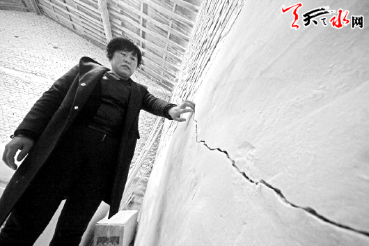 2月6日,记者再次来到马秀云的厂区,在现场看到,4层商品楼与厂房的间距仅有1米左右。马秀云说:“这栋楼严重影响到我们厂的采光,而且南侧厂房部分墙面也出现了开裂现象。”
