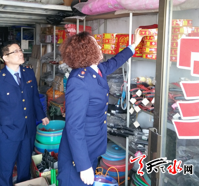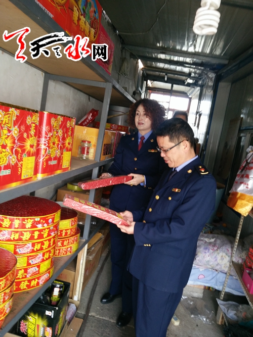 天天天水网讯 为进一步规范市场秩序,保障人民群众生命财产安全,近日,麦积区工商局马跑泉工商所在辖区开展烟花爆竹市场专项整治工作。