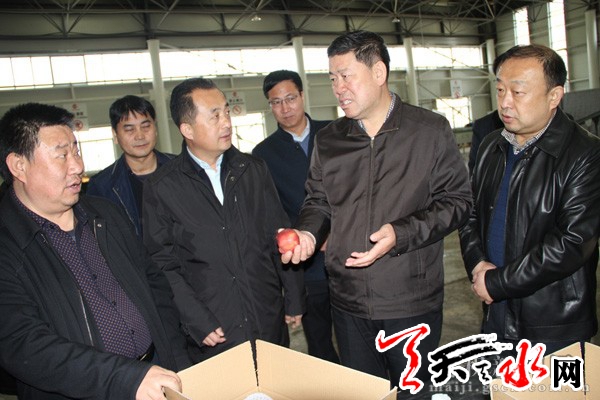 在麦积区天水花牛苹果产业园,王军深入天水花牛苹果(集团)有限责任公司、金盛包装印务有限责任公司,详细听取各相关部门负责人工作情况汇报,全面了解了天水花牛苹果产业园区建设、运行及果品销售等各项具体工作,并对麦积区在花牛苹果产业园建设方面所做的工作给予了充分肯定。王军指出,天水花牛苹果产业园作为全市现代农业推进计划重点项目之一,麦积区要本着服务服从于大局、支持果品产业发展的原则,加大项目资金、相关政策、经营运作等方面的支持力度,全方位支持园区建设,不断提升园区整体功能,强势推进园区各类项目建设,进一步推动农业产业化发展,实施品牌战略,延伸“花牛”苹果产业链,增加附加值,带动群众脱贫致富,提升城市品位,更有力地促进区域经济社会转型跨越发展。
