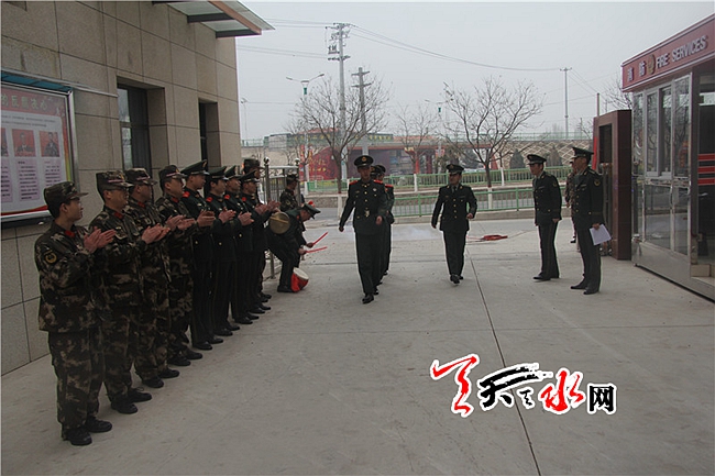 天天天水网讯(通讯员石国乾 朱万)2月20日下午,甘谷中队全体官兵警容齐整,列队营区大门,举行了隆重的新兵下队欢迎仪式。