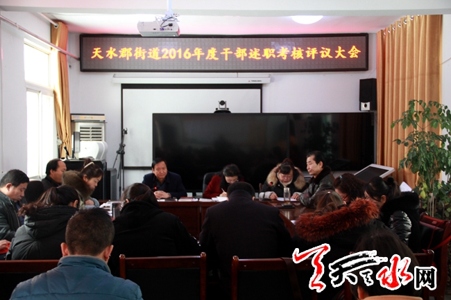 天天天水网讯(通讯员李月华)为了进一步强化对广大干部的监督管理,促进街道各项工作的有序开展,2月21日,天水郡街道召开了2016年度干部述职大会。会议由党工委书记成军同志主持,街道班子成员、全体干部职工等80余人参加了述职测评会议,包括各社区主任、站所负责人及一般干部在内的36人参与述职。