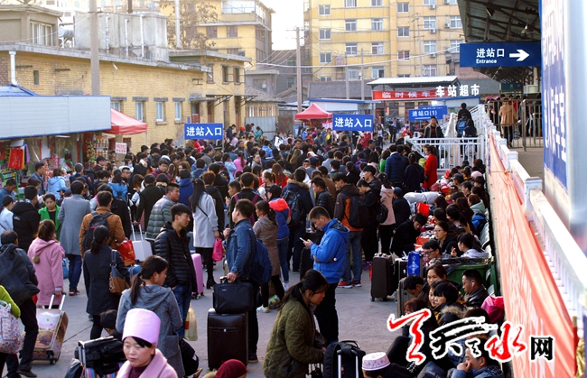 近日,天水火车站进站口挤满了出行的旅客。春节过后,外出务工人员和外地上学的学子们也都陆续踏上了行程,火车站迎来了节后人流量的“小高潮”。见习记者 闫波 摄