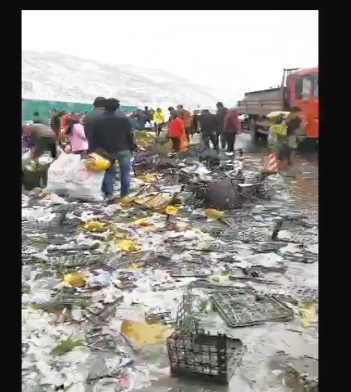 中国甘肃网2月24日讯 据兰州晨报报道 (首席记者王兰芳)2月22日,一段“车祸后,车载菠萝遭哄抢”的小视频,被不明真相的网民轮番转载,其中批评事故路段天水村民素质有待提高的评论更是不绝于耳。2月23日,记者实地采访还原事件真相,所谓哄抢一说不实。
