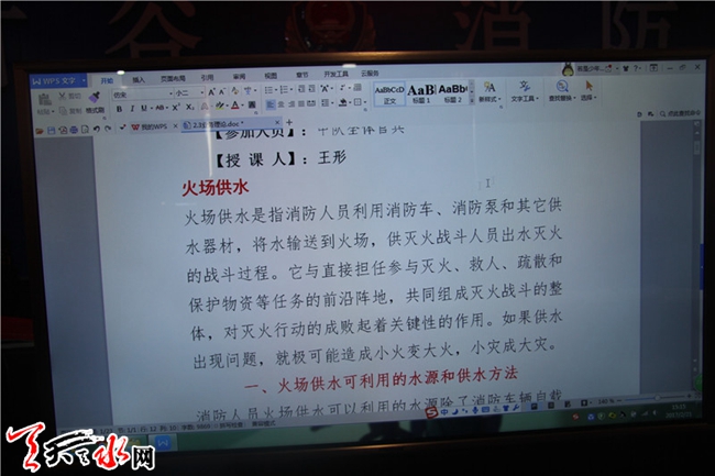 天天天水网讯(通讯员 朱万)为进一步提高官兵业务素质和灭火救援技能水平,更好的完成当前形势下的灭火救援任务。2月22日,甘谷中队组织全体官兵组织开展火场供水理论知识授课。