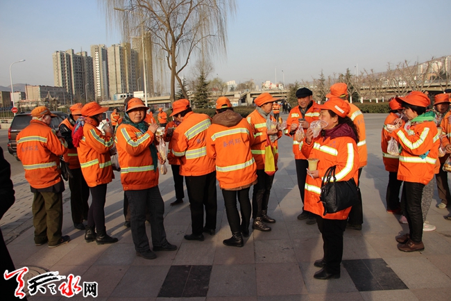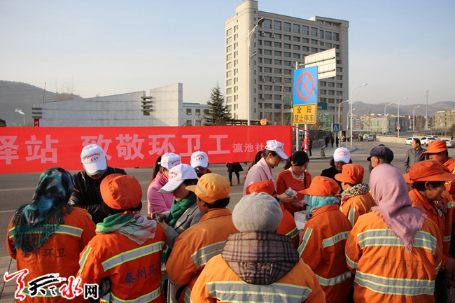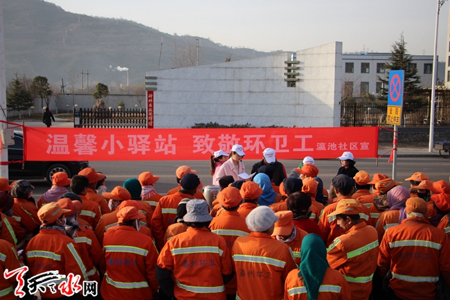 天水郡瀛池社区地处天水西交通要道,人员车辆整日川流不息,近年来,辖区街道能保持干净整洁的市容,与起早贪黑的环卫工的辛勤劳作是分不开的,为了答谢“城市的美容师”,激发全体居民关注尊重她们的劳动成果,瀛池社区组织辖区在职党员开展了“温馨小驿站 致敬环卫工”的志愿服务活动。