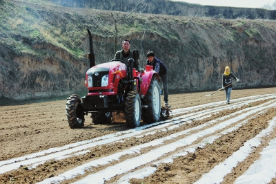 今年,张家川县把以春季顶凌覆膜为主的全膜双垄沟播技术推广作为调整该县农业产业结构、科技抗旱助农增收的有效举措,抢抓时机,加大农业科技投入,积极组织、指导群众开展春耕生产工作。图为该县龙山镇西川村村民正在种植全膜双垄沟播玉米。特约记者 沈维民