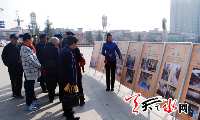 本次展览设置在甘谷县中心广场,讲解员依托展板内容,热情地为大家介绍宣传天水民俗博物馆的历史、文化和古民居知识,向居民发放免费参观券500张、宣传品200份、吉祥物50个。