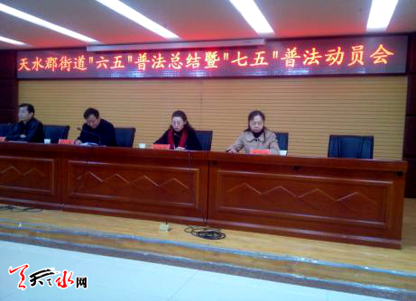 天天天水网讯(通讯员任勇)3月17日,天水郡街道在市三院会议室召开“六五”普法总结暨“七五普法动员部署大会,全街道法治宣传教育领导小组成员单位,街道、社区全体干部180余人参加会议。
