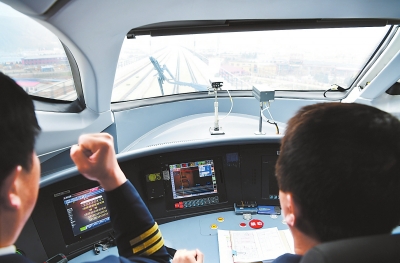 拉动牵引手柄,将制动手柄推至运行位,3月27日10时33分,DJ1803次检测列车在司机刘占魁的标准驾驶下从东岔站缓缓启动。250公里/小时……276公里/小时……278公里/小时,随着速度的提升,列车像离弦之箭驶出东岔车站,风驰电掣般行驶在宝兰客专东岔至兰州西站334公里的铁道线上。
