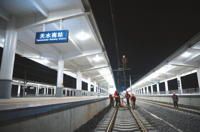 天水南站的施工人员加班加点保障测试工作顺利进行。