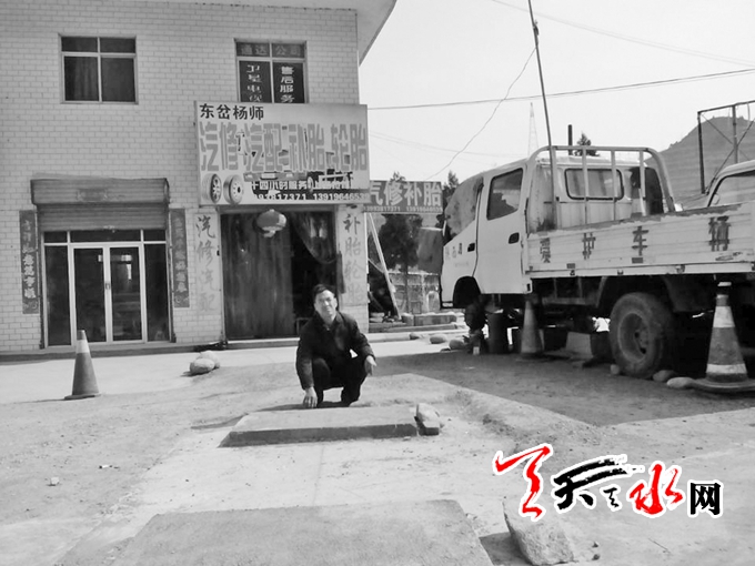 1986年码头桥修建好后,桥头一直是村民倒垃圾的荒河滩,他在这开始修车时,便自费叫来铲车垫起了一块专门用来停放车辆的场地。去年10月份,东岔镇政府预计在这里修建一个牌坊,今年2月24日,施工队来了4、5个人,将他门前的的马路挖开了一条1米多宽的渠,土块堆满路上车不能通行了,过往的车辆都从他的门店前绕道,严重影响了他的生意。村民们都希望能将这个牌坊往西面稍移几十米,这样相互都不受影响。