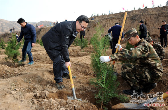 当天,麦积区委书记张智明,区人大常委会主任贾应珍,区委副书记、区长成少平,区政协主席杨续祥等四大组织领导以及区直有关部门、乡镇干部职工和森林武警官兵,一起在石佛镇北山植树点开展义务植树活动,用实际行动号召全区广大群众积极植树造林、绿化美化家园。