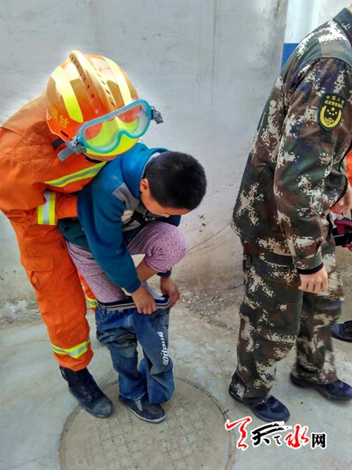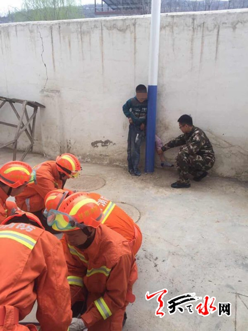 天天天水网讯【记者 刘晓亚 通讯员 王志成】4月2日,一个小男孩在玩耍时不慎把左腿夹在围墙与电杆之间拔不出来,经过消防和派出所民警全力施救,被困2个多小时的男孩最终活蹦乱跳的离开。