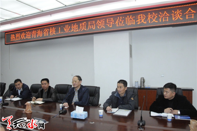 天天天水网讯 近日,青海省核工业地质局赵世勇局长一行到甘肃工业职业技术学院参观考察,洽谈校企合作办学事宜。该校校长曹爱明、副校长鲁挑建,学校教务处、工程实训中心、地质学院负责人等陪同参观考察。